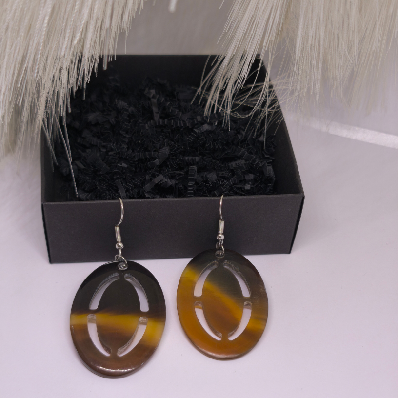 🐯 Šie auskari simbolizē pašpārliecinātību, drosmi un iekšējo mieru – it kā tigra skatiens, pilns spēka un noslēpuma. Ovāla formas dizains ar viegli izgrieztu iekšējo līniju piešķir auskariem modernumu un izcilību.