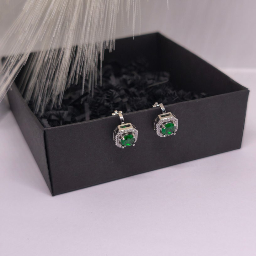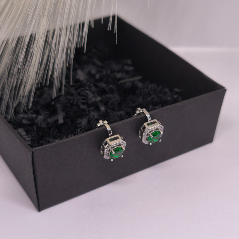 Auskari – klipši „Karaliskā aura“ – elegantiški klipši ar piesātināti zaļu akcentu, kas izstaro greznību un izsmalcinātību. Ideāla izvēle tām, kas vēlas karalisku stilu bez caurdurtām ausīm.