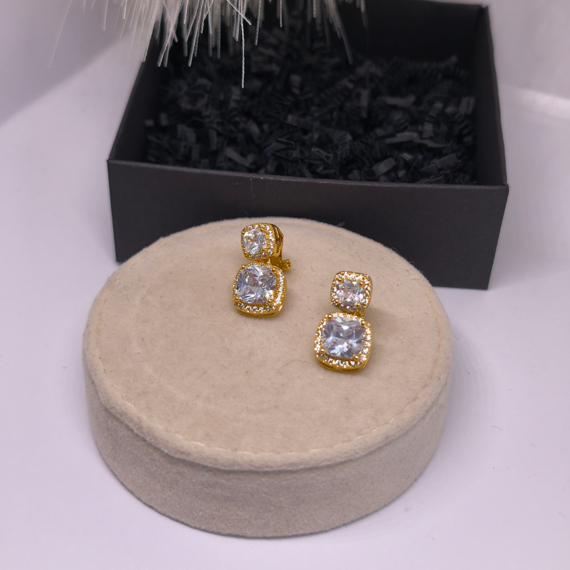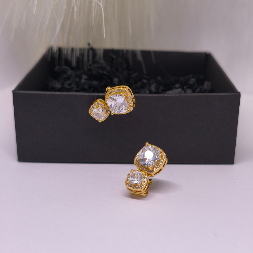 Auskari-klipši „Zelta valdzinājums“ – mirdzoša izvēle īpašiem notikumiem. Spilgtas, elegantas un ērti valkājamas pat bez caurdurtām ausīm.