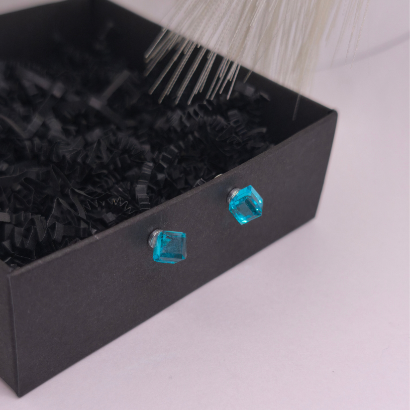Magnētiskās auskari „Akvamarīna kubi“ – elegants un praktisks risinājums, ja vēlaties akvamarīna spīdumu bez ausu caurduršanas. 💎 Kubu formas kristāli (akvamarīna nokrāsas) smalki mirdz gaismā, un magnētiskais aizdare nodrošina ērtu un drošu valkāšanu visas dienas garumā.