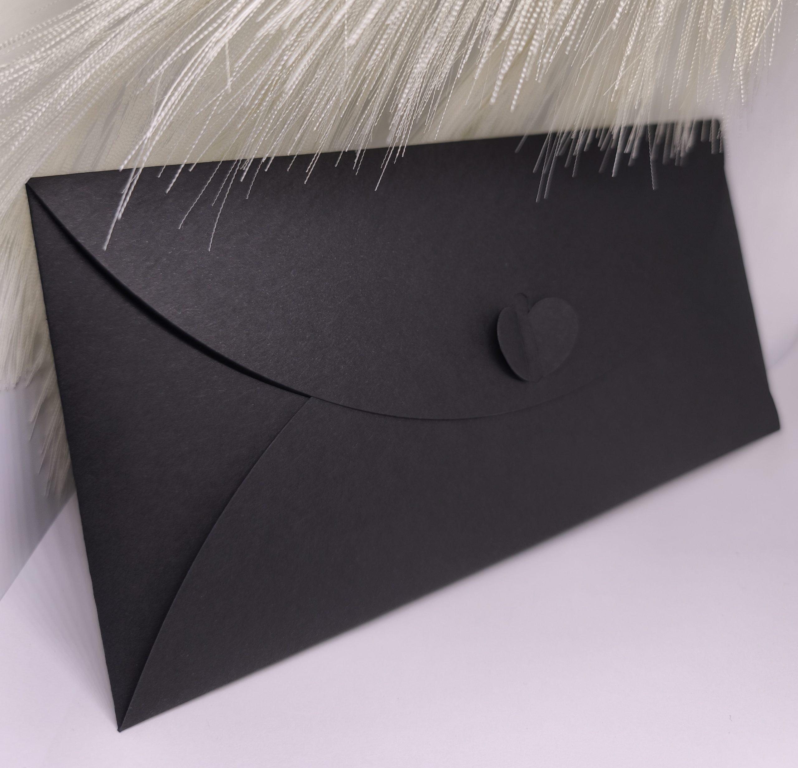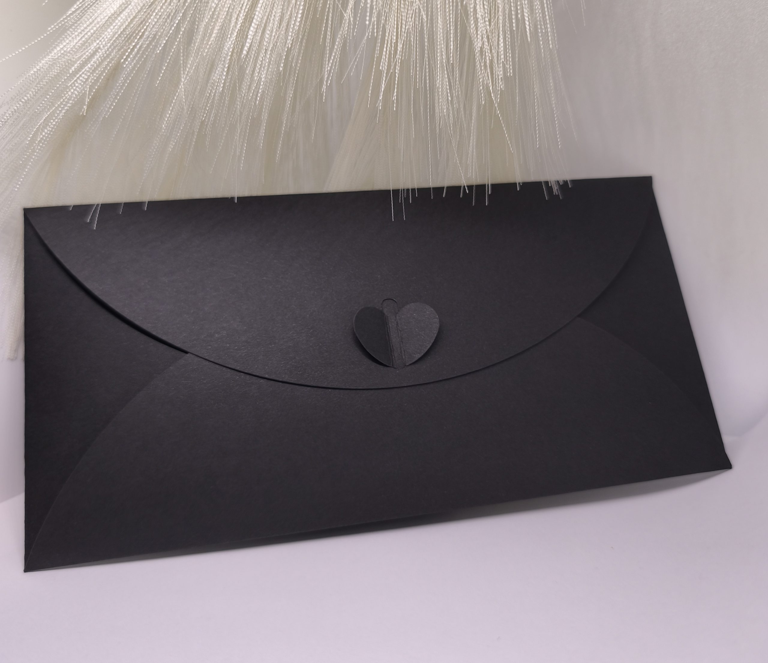 🖤 Melna dāvanu aploksne ar sirsniņas aizdari – elegants akcents, kas padara jūsu dāvanu īpašu un neaizmirstamu.