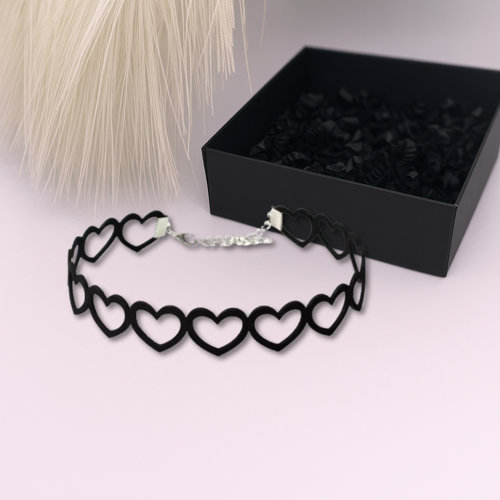 ❤️ Kaklarota „Sirsniņu deja“ – izteiksmīgs čokera stila aksesuārs, kas izceļ tavu unikālo stilu un romantisko garu. Melno sirsniņu raksts piešķir šai kaklarotai rotaļīgumu, smalku drosmi un eleganci vienlaikus.
