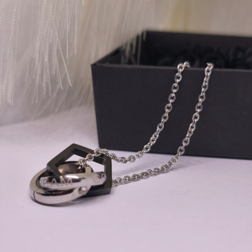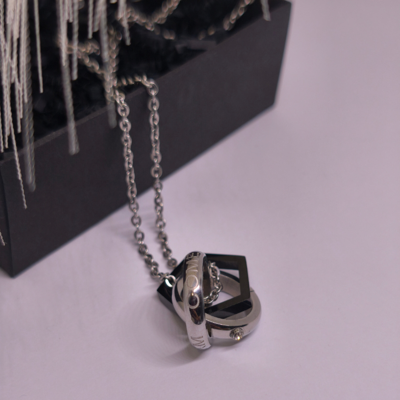 Rotaslieta izceļas ar mūsdienīgu ģeometrisku dizainu – apaļš gredzens saplūst ar stūrainu metāla elementu, radot smalku kontrastu starp spēku un eleganci 🖤. Izgatavota no augstas kvalitātes nerūsējošā tērauda, tāpēc ir ilglaicīga, izturīga pret mitrumu un nezaudē spīdumu ✨.