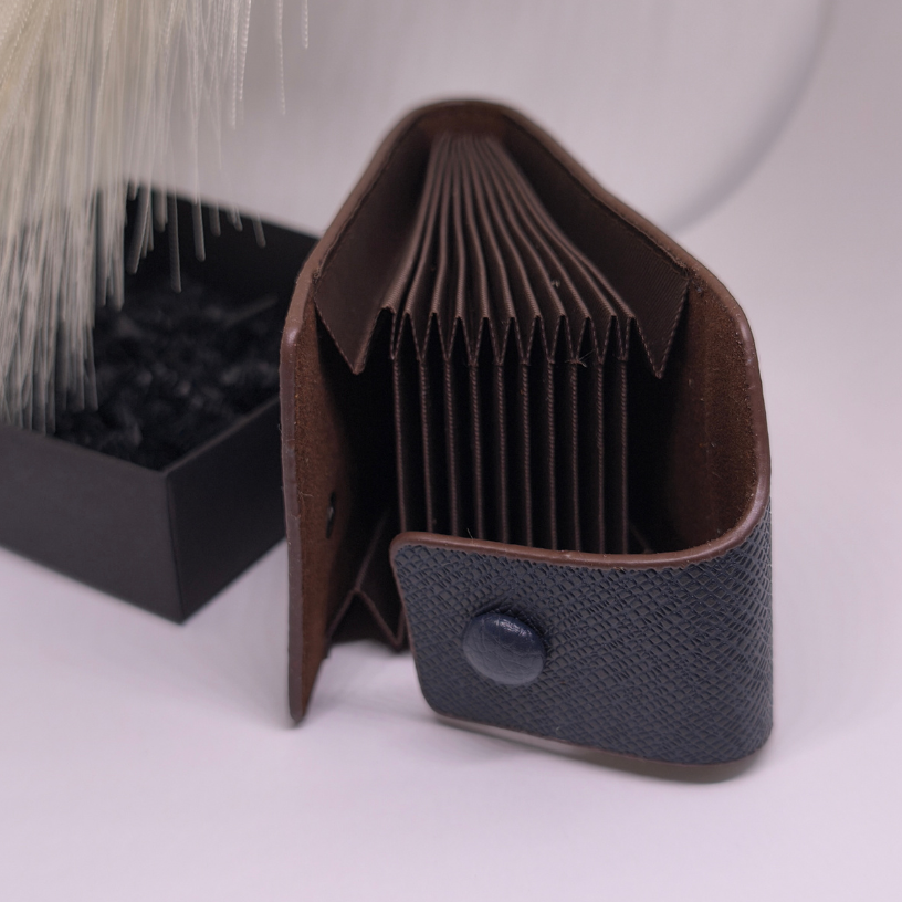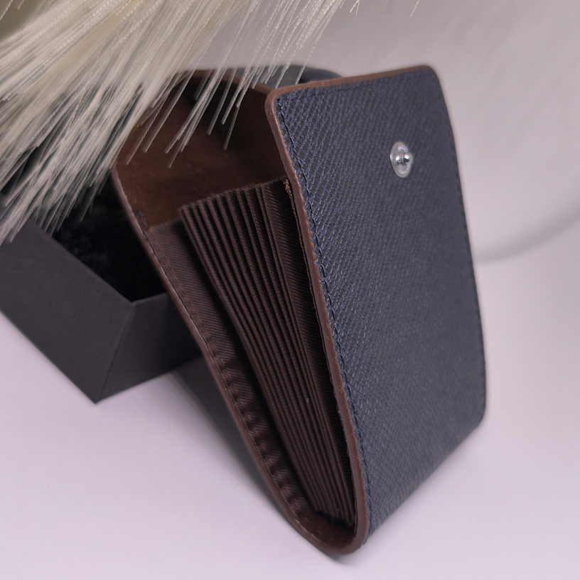 Tumši zilā krāsa simbolizē mieru, uzticamību un stabilitāti, tāpēc šis kartīšu turētājs kļūst par universālu izvēli gan vīriešiem, gan sievietēm. 👔👜