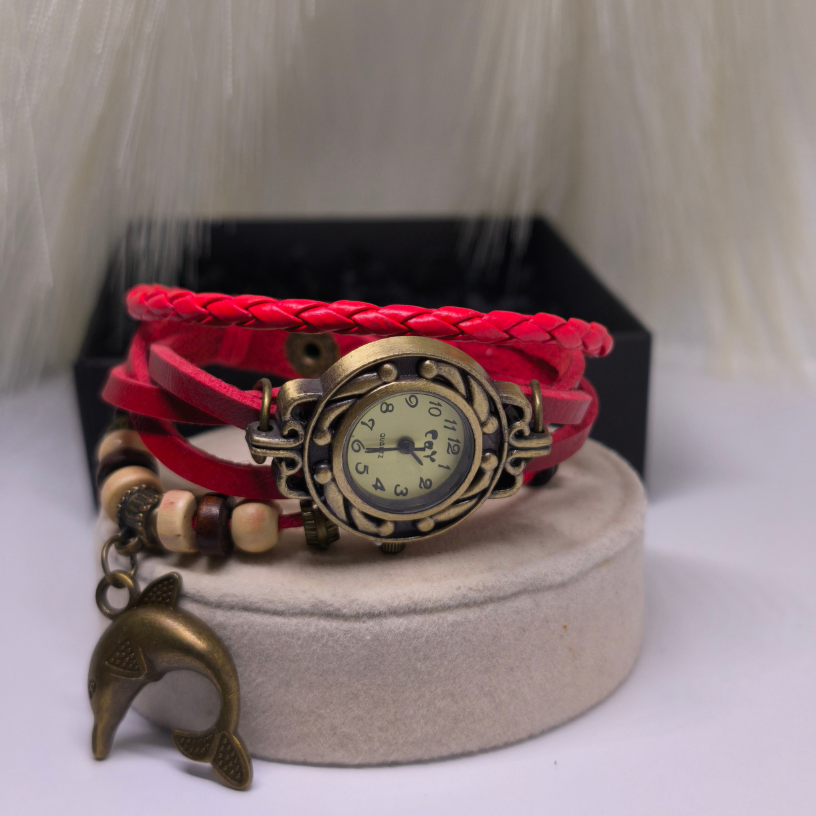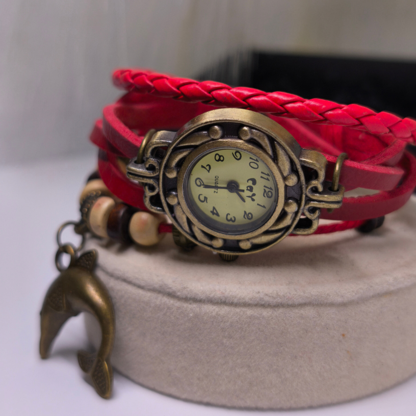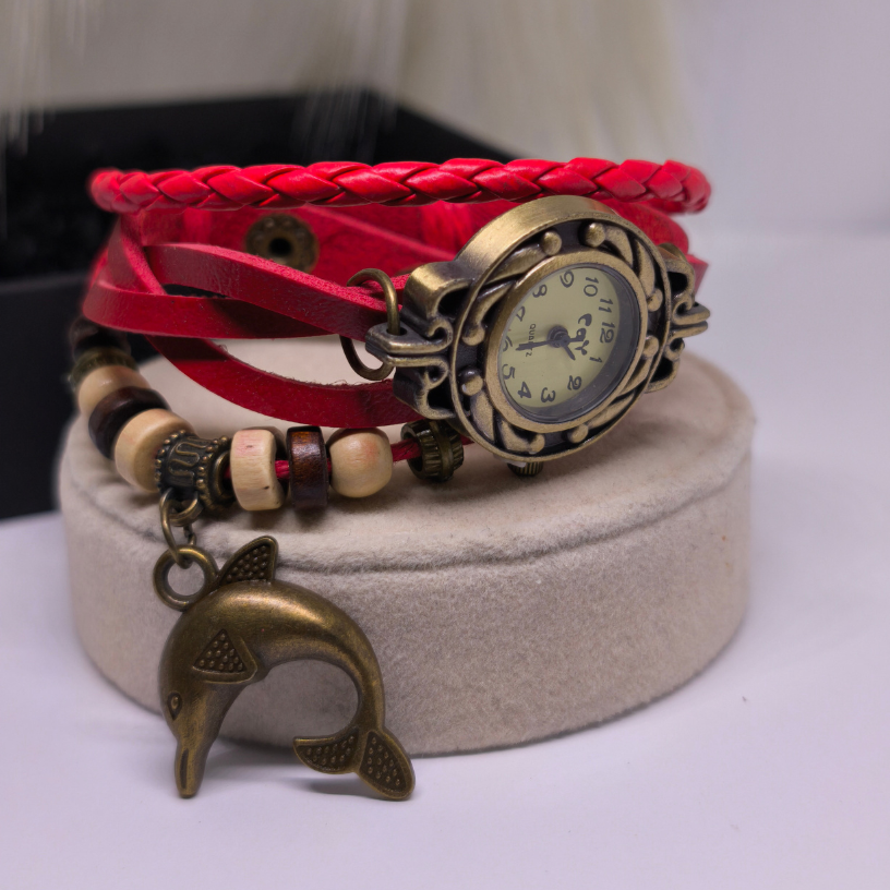 🐬 Laikrodis „Delfīna sapnis“ – tas ir unikāls sieviešu aksesuārs, kas izstaro vasaras vieglumu un brīvības sajūtu. Spilgti sarkana ādas siksniņa simbolizē kaisli un enerģiju, bet delfīna piekariņš atgādina par sapņiem, ceļojumiem un jūras svaigumu. 🌊✨