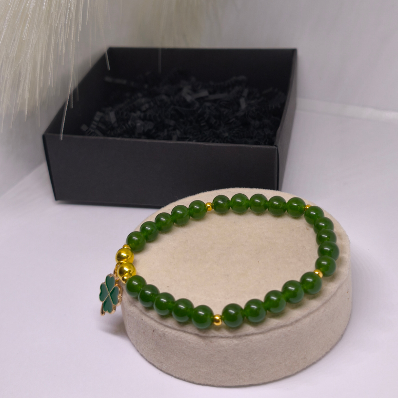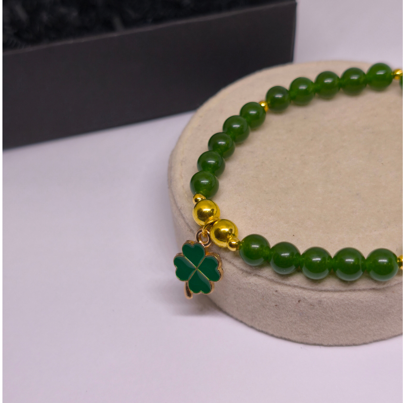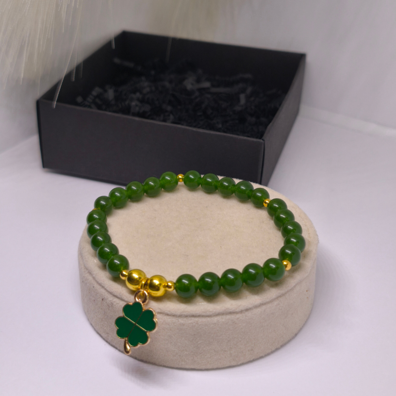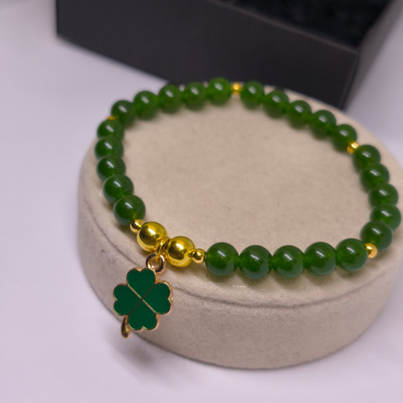 🍀 Rokassprādze „Zaļais āboliņš“ – tas ir talismans, kas piesaista veiksmi, harmoniju un labu enerģiju. Apvienojot dabas zaļā halcedona pērlītes ar zeltainām detaļām un četrplaukstas āboliņu, šī rokassprādze kļūst ne tikai par stilīgu aksesuāru, bet arī par nozīmīgu simbolisku dāvanu.
