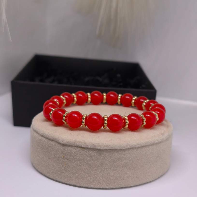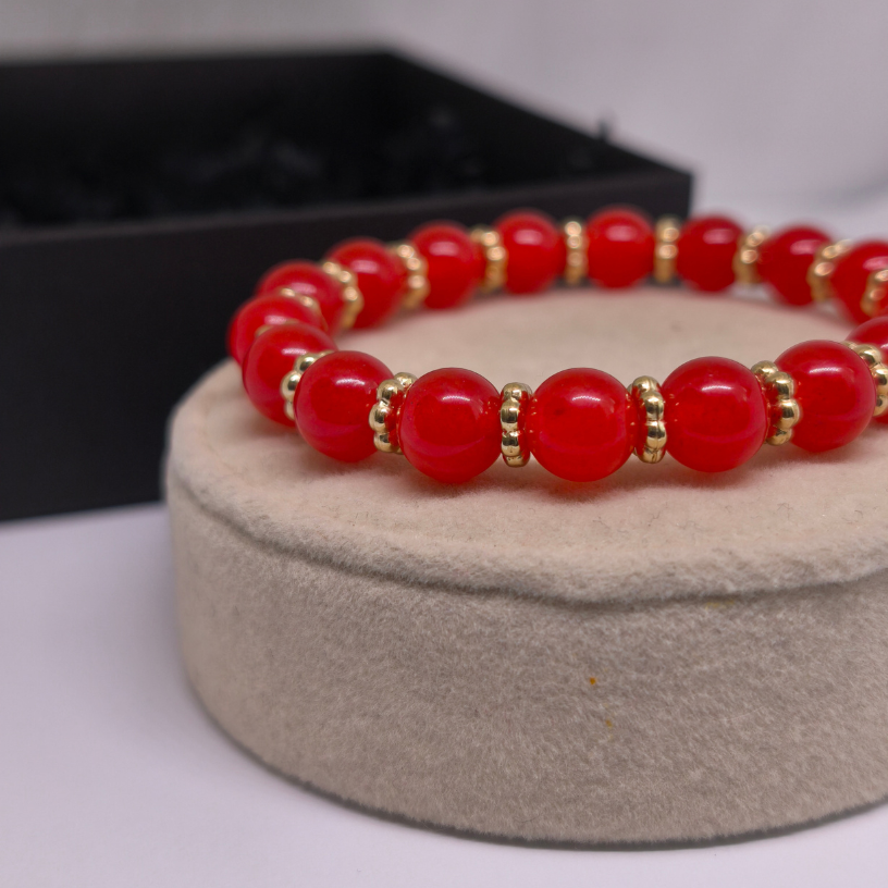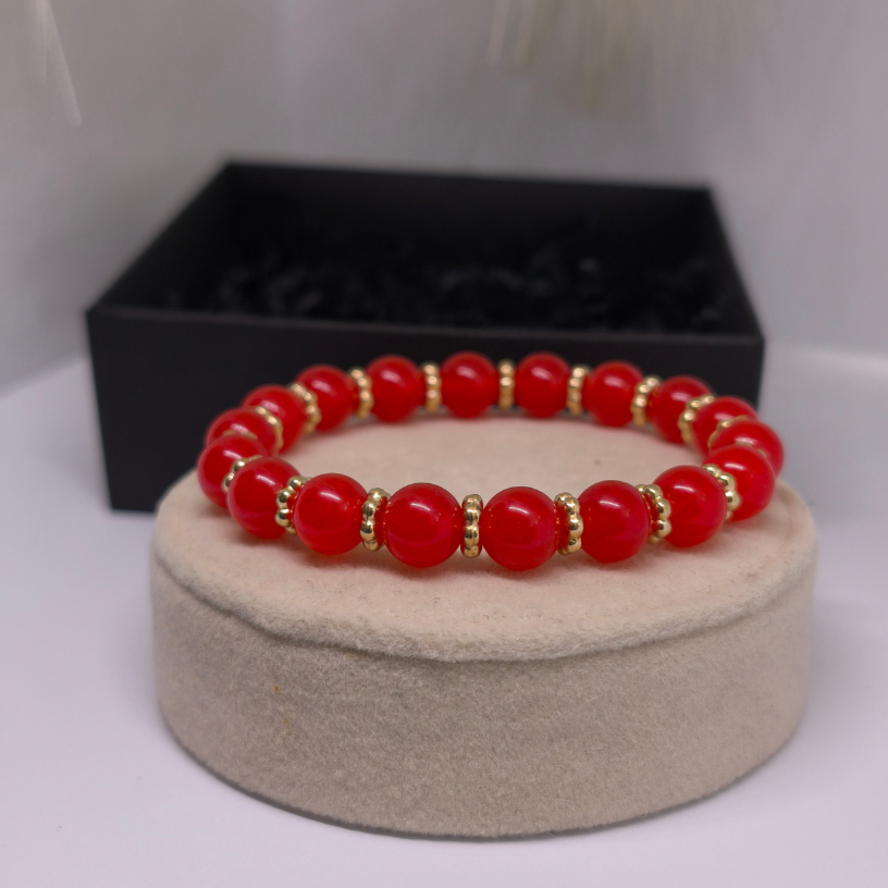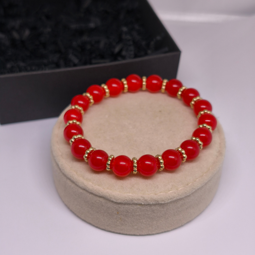 🔴 Sarkana krāsa simbolizē kaisli, drosmi un dzīvīgumu – tāpēc šī rokassprādze kļūs par tavu enerģijas un pašpārliecības avotu.