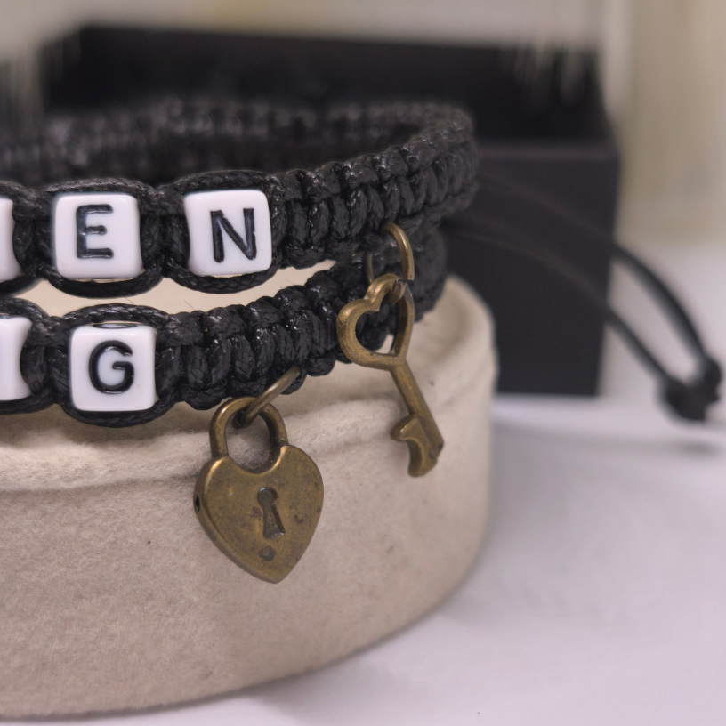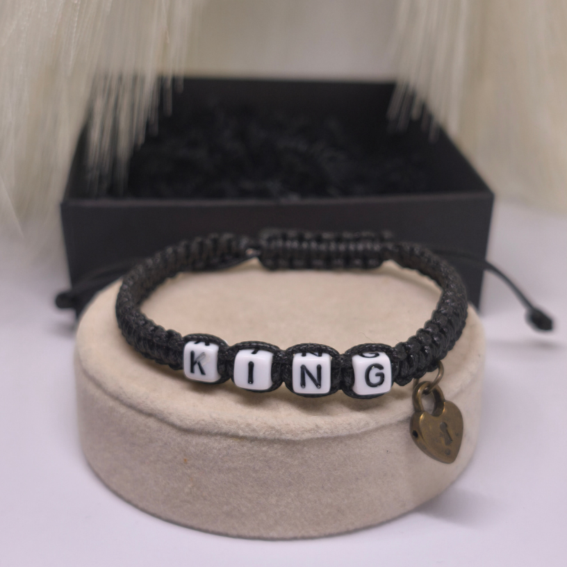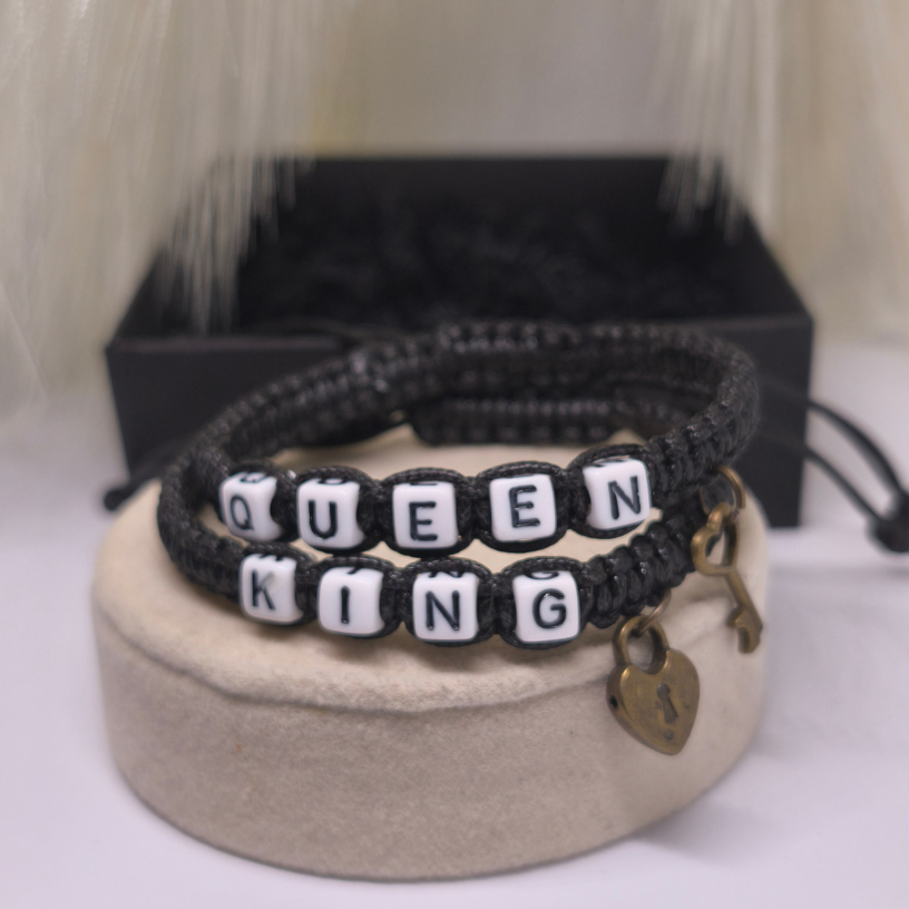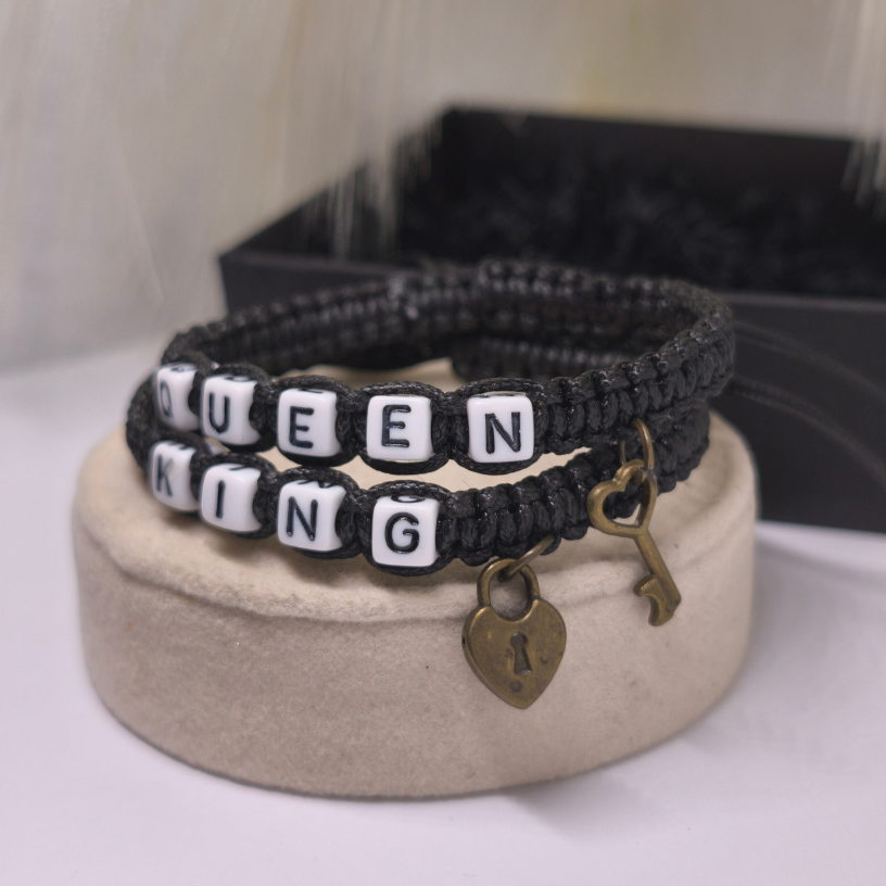 💑 Rokassprādžu komplekts pārim „Sirds atslēga“ – tas ir ne tikai stilīgs aksesuārs, bet arī dziļas saiknes simbols starp diviem mīlošiem cilvēkiem. Divas rokassprādzes, rotātas ar uzrakstu KING un QUEEN, atspoguļo ideālu pāra harmoniju, bet mazās piekariņa formas – sirds un atslēga 🔒🔑 – atgādina, ka īsta mīlestība vienmēr atrod ceļu uz sirdi ❤️.