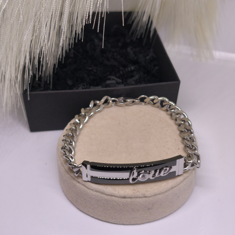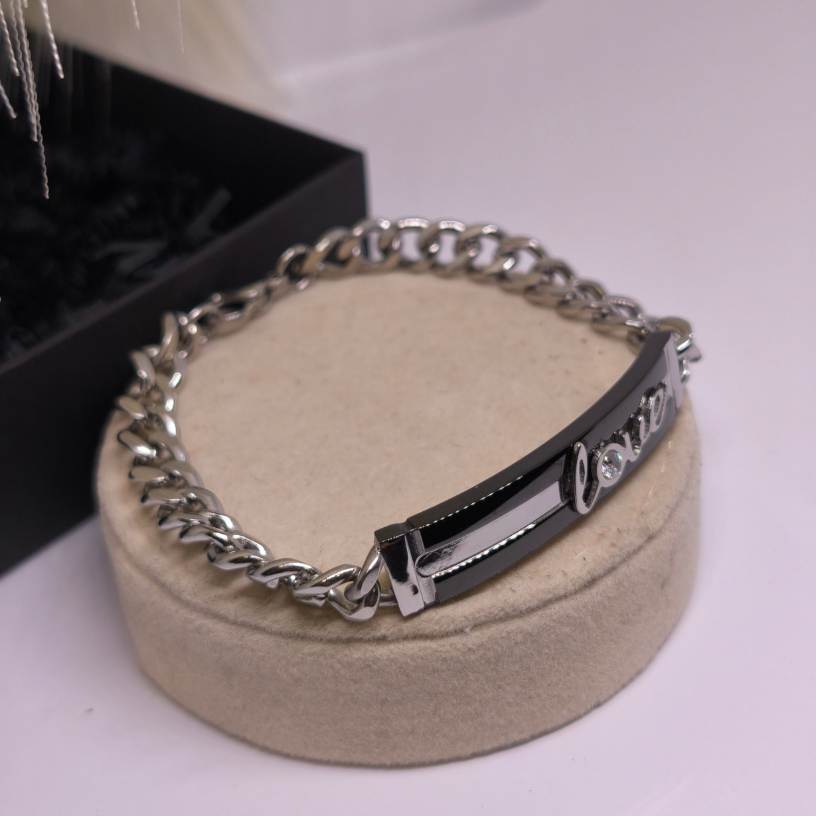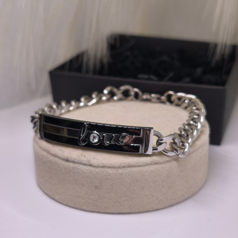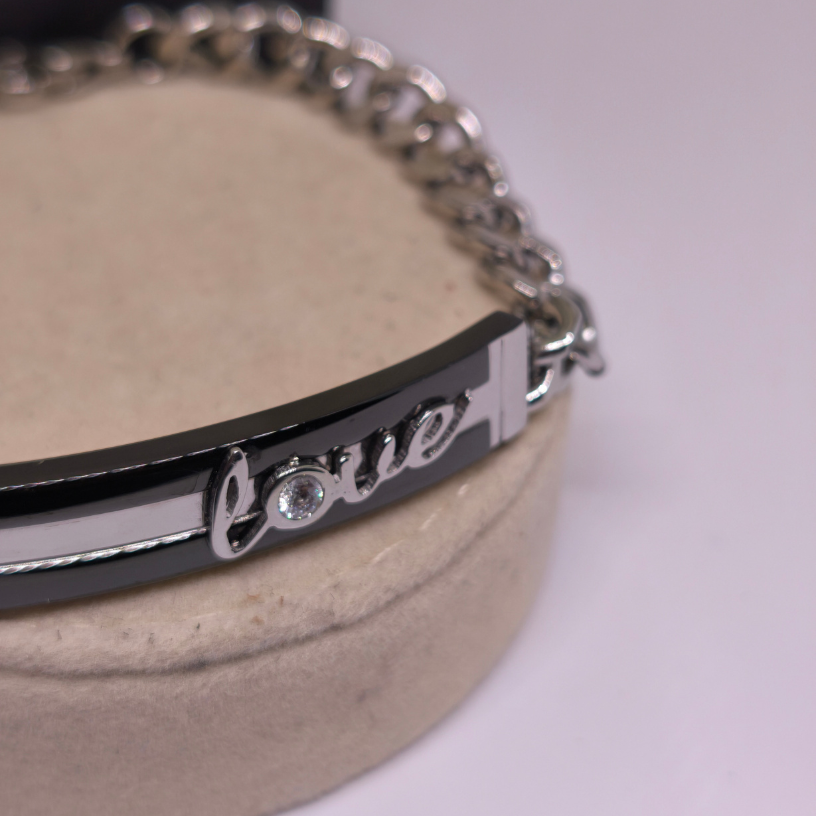 💖 Rokassprādze „Love“ – tas ir mīlestības un elegances simbols, kas izstaro smalkumu un modernu stilu. Izgatavota no augstas kvalitātes nerūsējošā tērauda, šī rokassprādze lieliski der gan ikdienai, gan īpašiem gadījumiem ✨.
