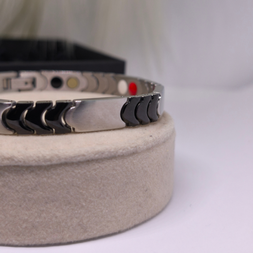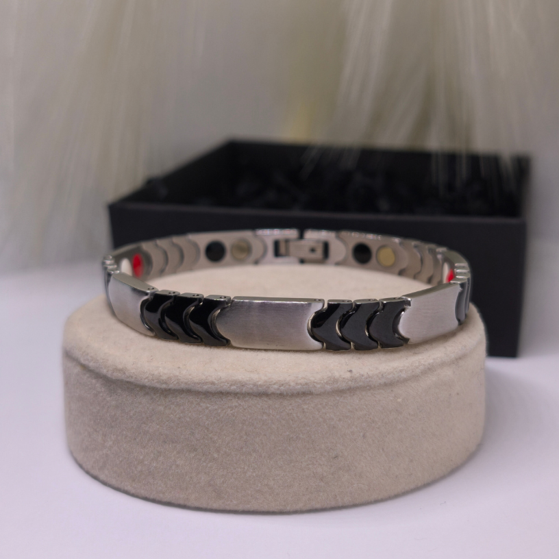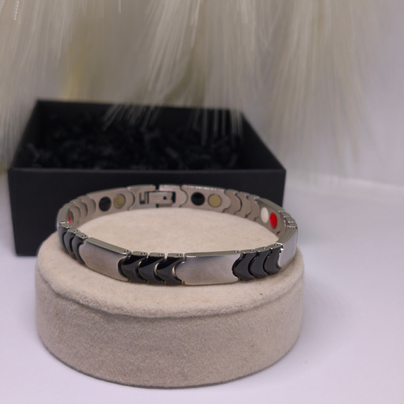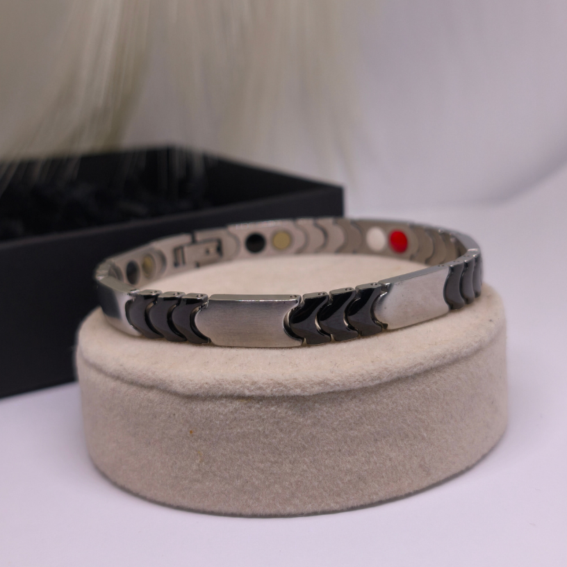 💪 Rokassprādze „Titāna enerģija“ – tas ir vīrišķības, spēka un modernitātes simbols. Izgatavota no augstas kvalitātes nerūsējošā tērauda, šī rokassprādze izskatās iespaidīgi.